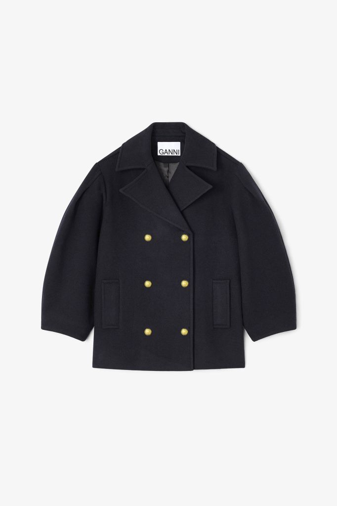 Dark Blue Wool Oversized Midi Peacoat